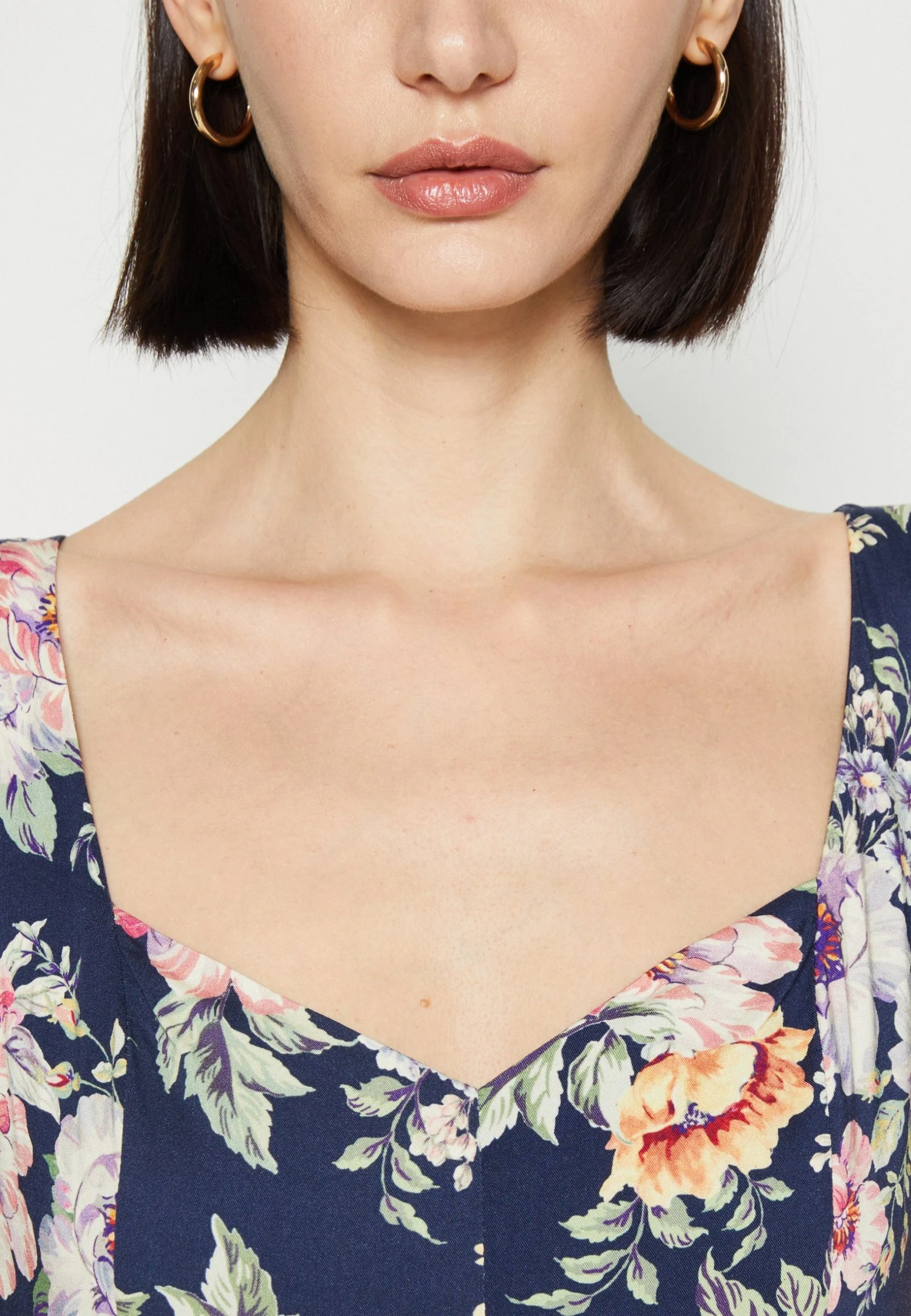 | Neckline | Low-cut v-neck |